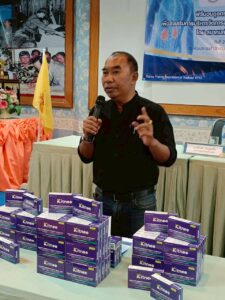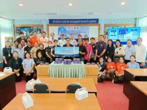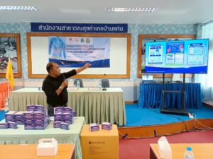 พิธีส่งมอบชุดตรวจคัดกรองโรคไต AL -Strip เพื่อส่งเสริมการบริหารจัดการสุขภาพในพื้นที่อำเภอบ้านแท่น จังหวัดชัยภูมิ โดยสมาคมเพื่อนโรคไตแห่งประเทศไทย ณ ห้องประชุมสำนักงานสาธารณสุขอำเภอบ้านแท่น จังหวัดชัยภูมิ